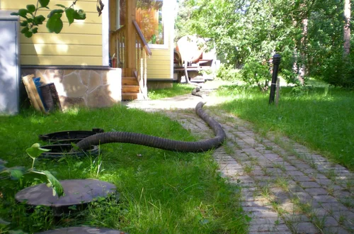 Некоторые септики выполнены в виде вертикального колодца. Для их откачки требуется длинный шланг. Наши автомобили оснащены шлангами 60 м. Это длины хватит для работы с септиком любой глубины.